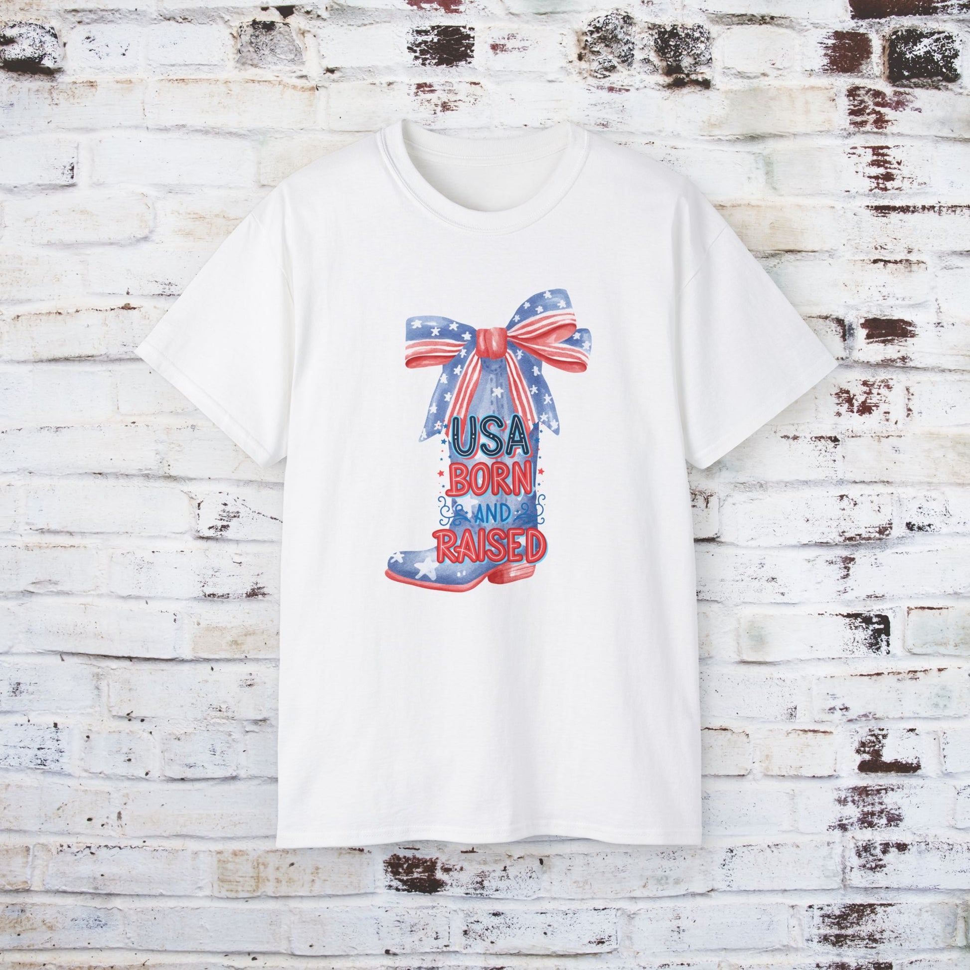 USA Born and Raised Unisex Ultra Cotton Tee - Patriotic Graphic T-Shirt for Independence Day